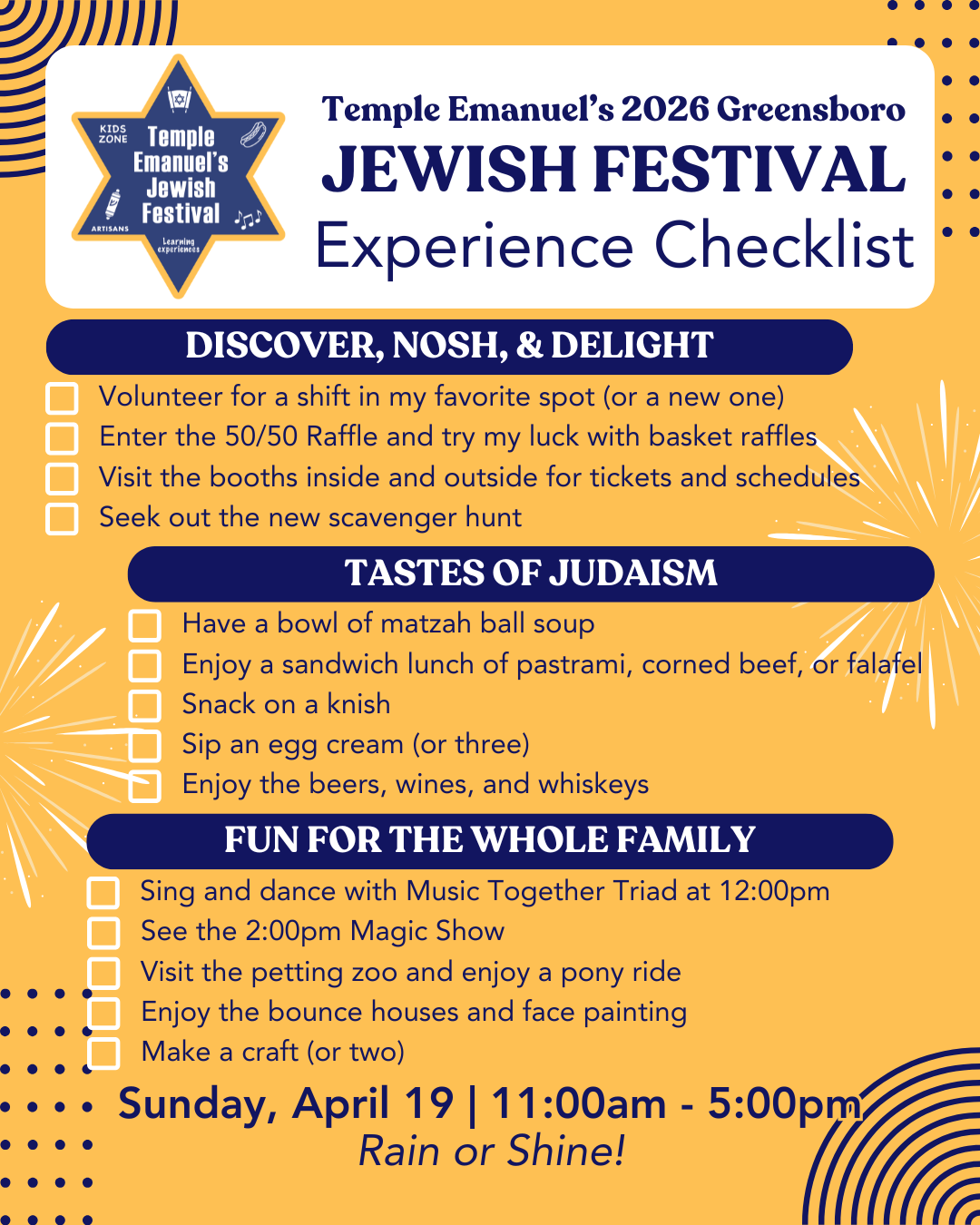 Temple Emanuel’s Greensboro Jewish Festival